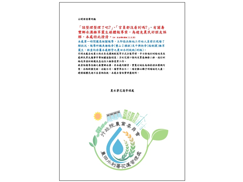 縮圖-有關媒體報導壽豐路側溝雜草叢生 公開澄清聲明 雜湊值驗證 18443_thumbOfIndex_1.jpg