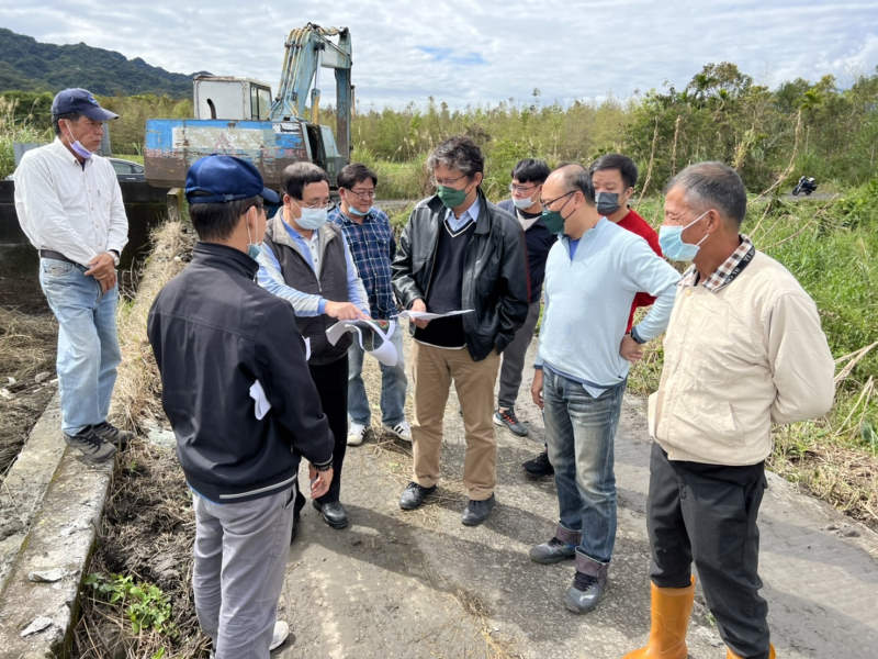 111年2月25日張處長率同副處長、工務組長、同仁及承包廠商、小組長至「南富圳7-1號埤改善工程」工區,了解目前施工進度及欲擴大南富圳7-1號埤池蓄水範圍之用地勘查,冀望增加光復鄉馬佛地區稻作用水來源。