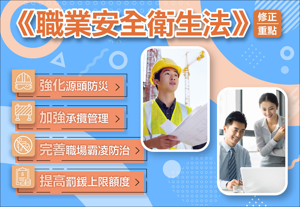 建構安全健康之勞動環境是國家永續發展目標之一,政府近年來積極推動各項職場防災措施,其職業災害已呈現下降趨勢。惟為因應國際發展趨勢、國內產業現況及近期數起職場霸凌事件,政府再推動修正《職業安全衛生法》,期透過強化源頭防災、加強承攬管理、完善霸凌防治、提高罰鍰上限額度等重點進行調整,督促事業單位落實職場防災責任,使我國職場安全衛生邁入新的里程碑。