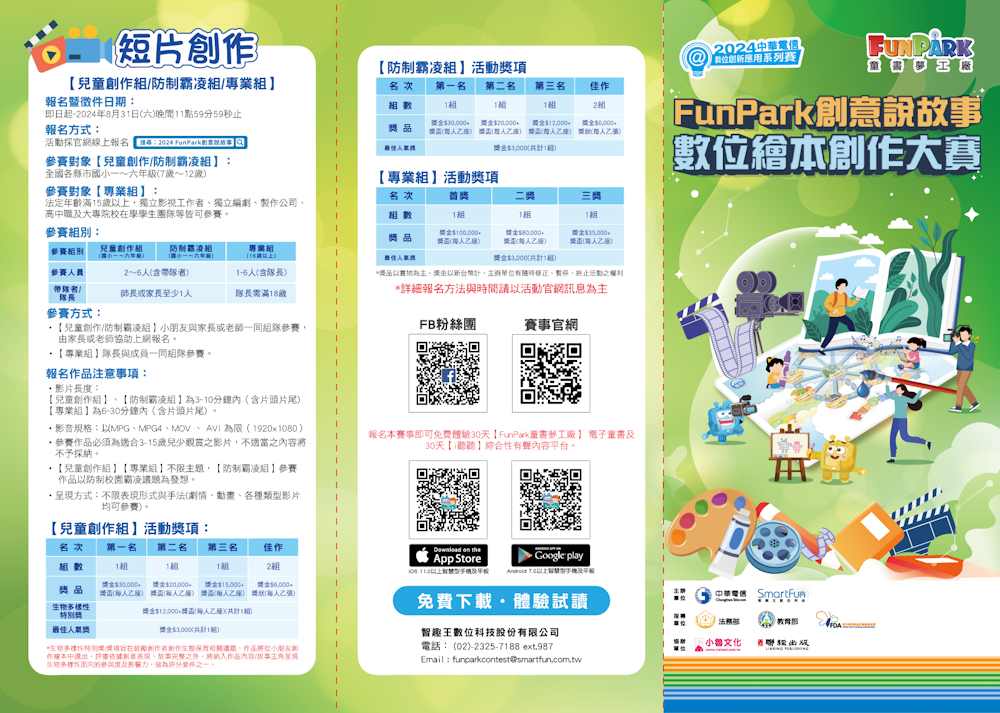 - 法務部結合智趣王數位科技股份有限公司辦理2024年「 FunPark創意說故事—數位繪本創作大賽」,